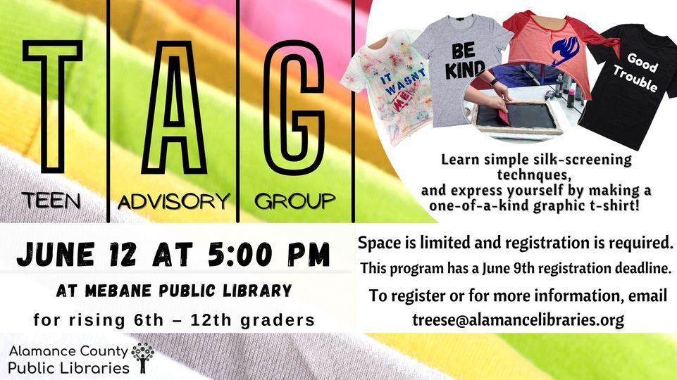 Teen Advisory Group (T.A.G.) Summer Series DIY Graphic TShirts