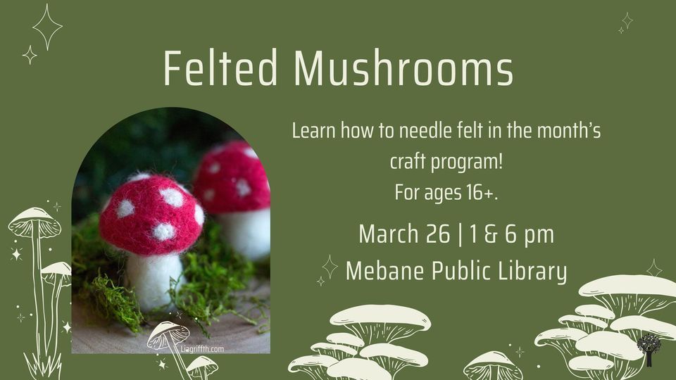 Felted Mushrooms, Mebane Public Library, 26 March 2024 AllEvents.in