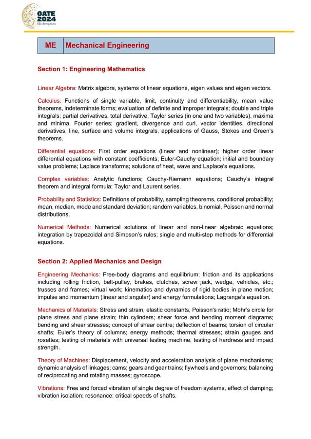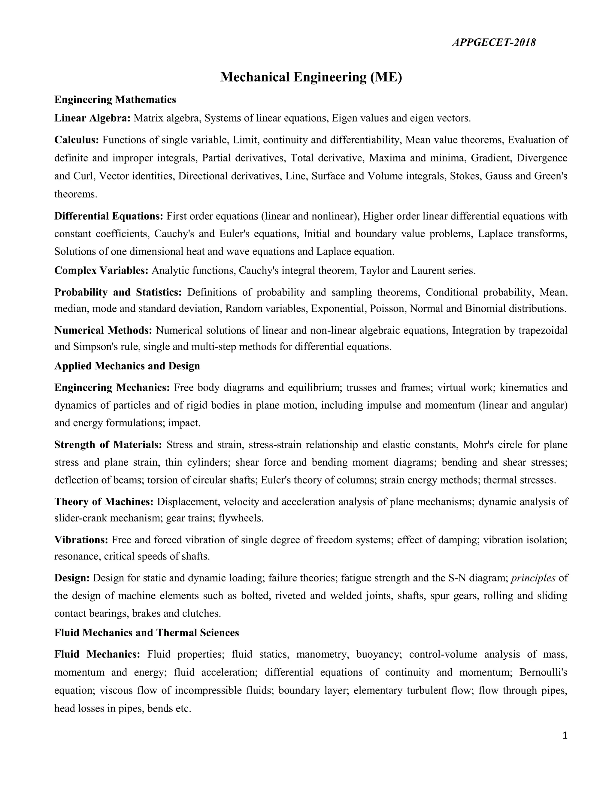 AP PGECET Mechanical Engineering 2018 Syllabus PDF