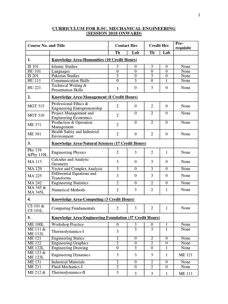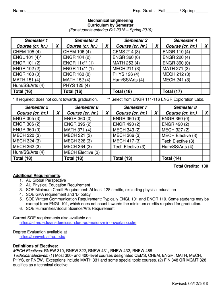 Fillable Online Mechanical Engineering Curriculum by Semester My