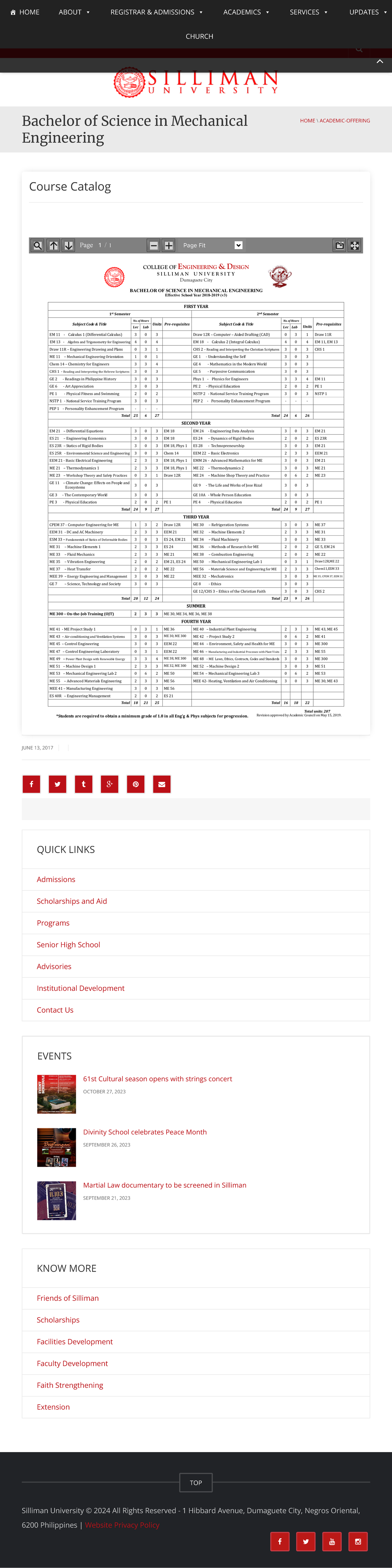 Bachelor of Science in Mechanical Engineering Curriculum Overview (SY