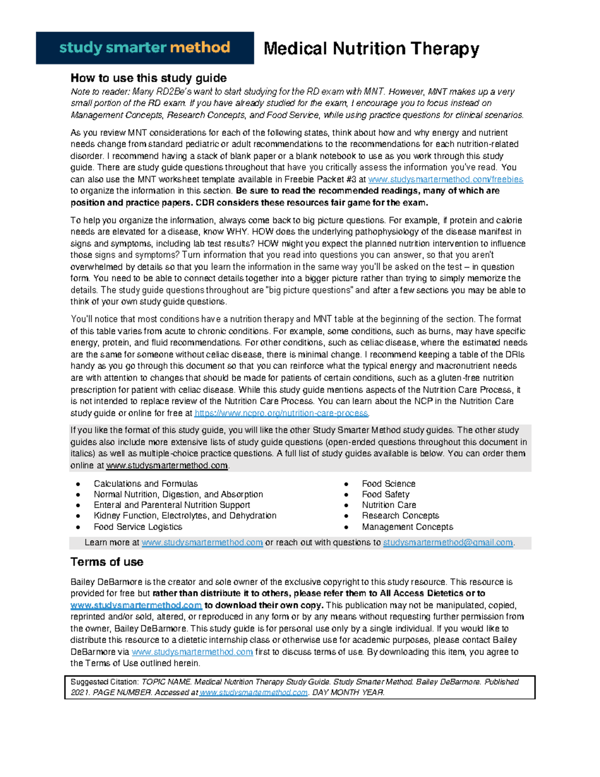 Medical Nutrition Therapy Study Guide 2021 Medical Nutrition Therapy