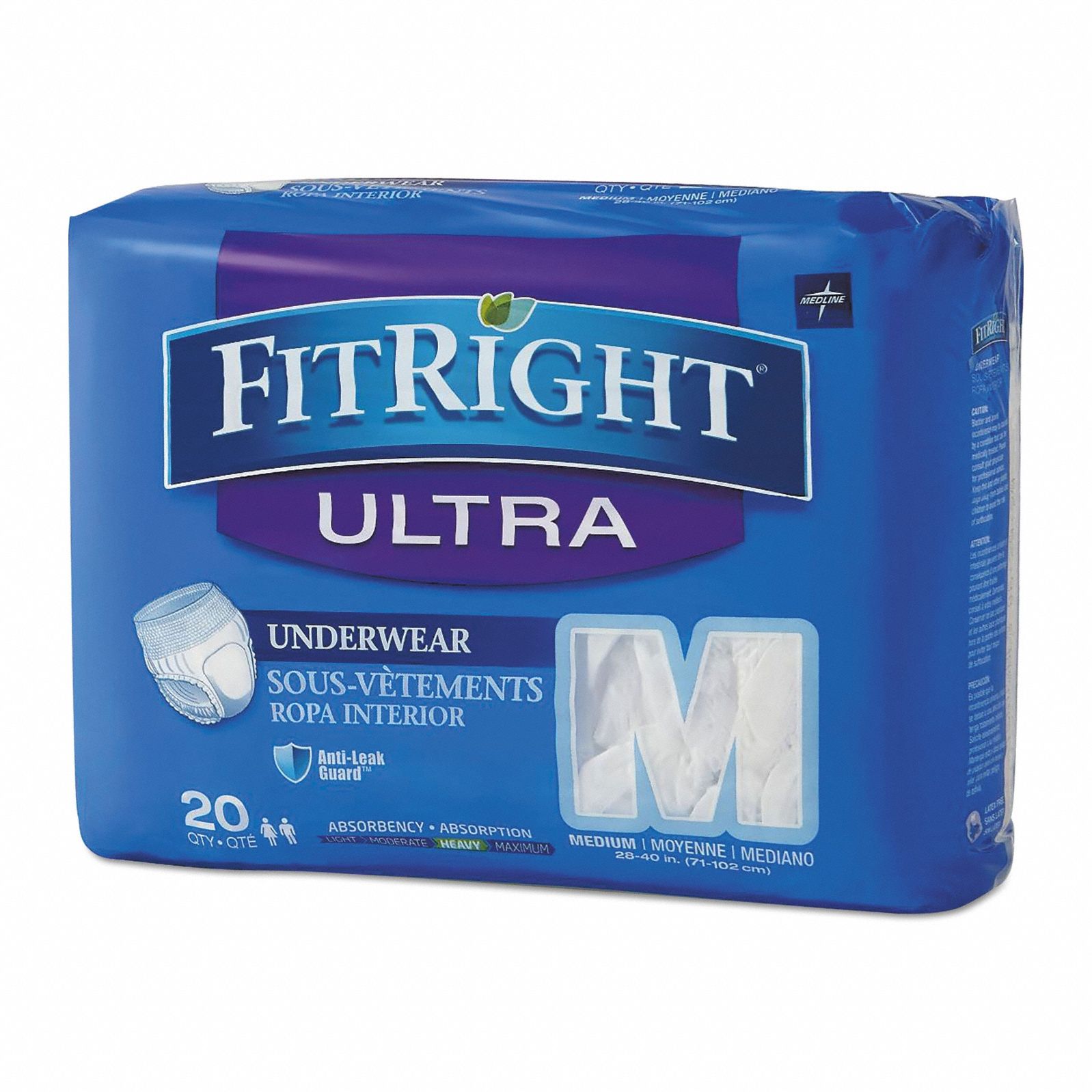 Medline FitRight Ultra Disposable Underwear M 80Ct