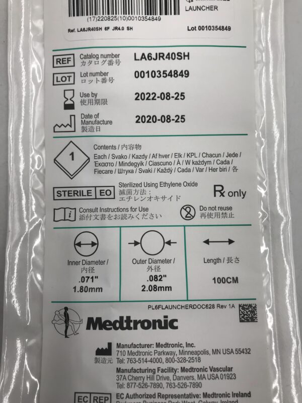 MEDTRONIC LA8JR40D Launcher Guiding Catheter JR4.0 8F (X) GB TECH USA