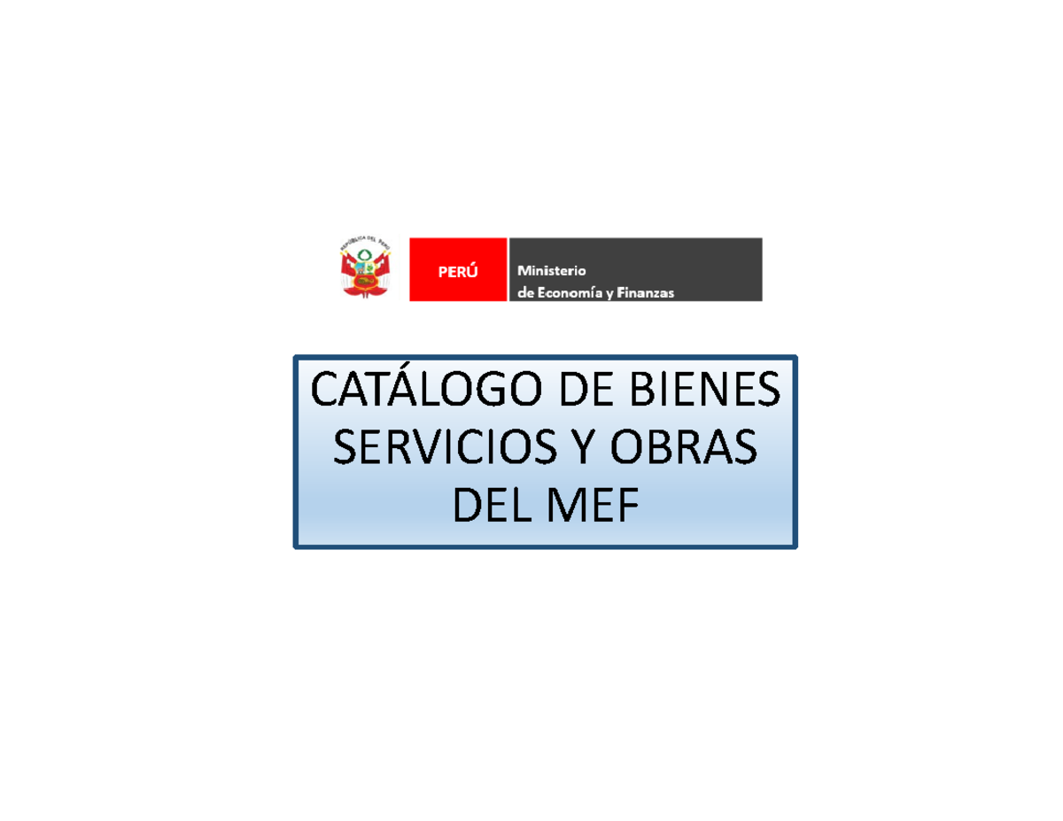 Catalogo bienes 23092016 CATÁLOGO DE BIENES SERVICIOS Y OBRAS DEL MEF