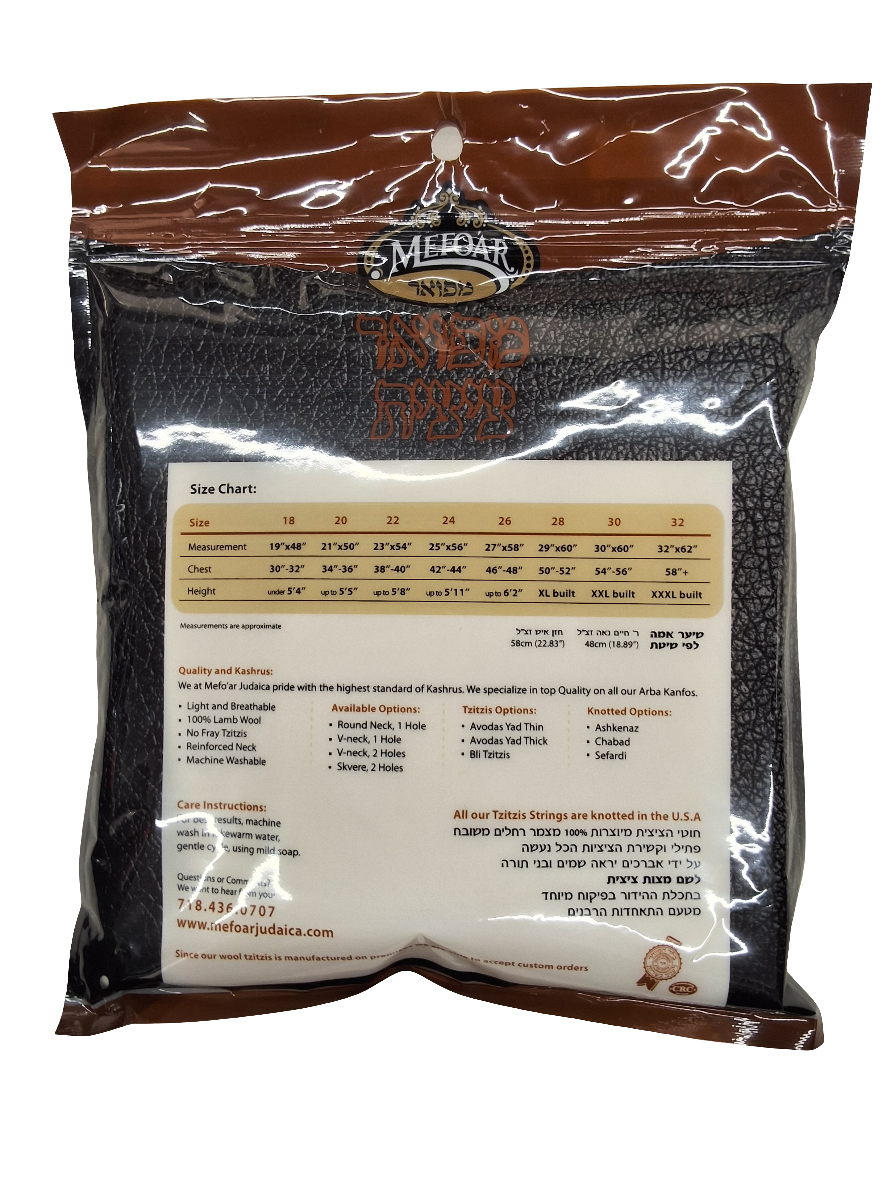 UNDERSHIRT TZITZIS SEFARDIC VNECK MEFOAR Aspaclaria Judaica