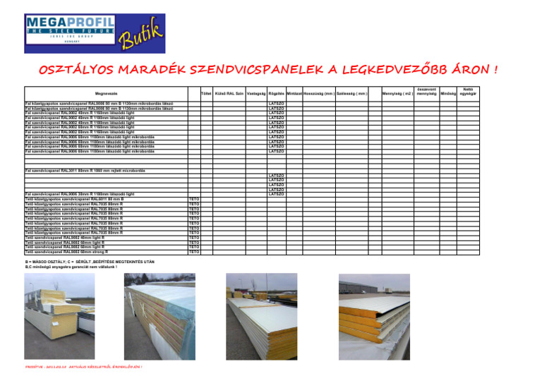 Megaprofil Butik Maradék Szendvicspanel 2011.02.15 PDF