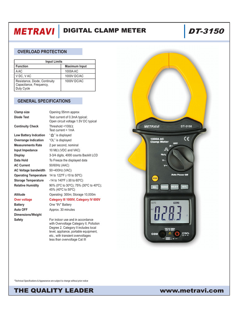 Metravi DT 3150 Digital Clamp Meter Catalogue PDF