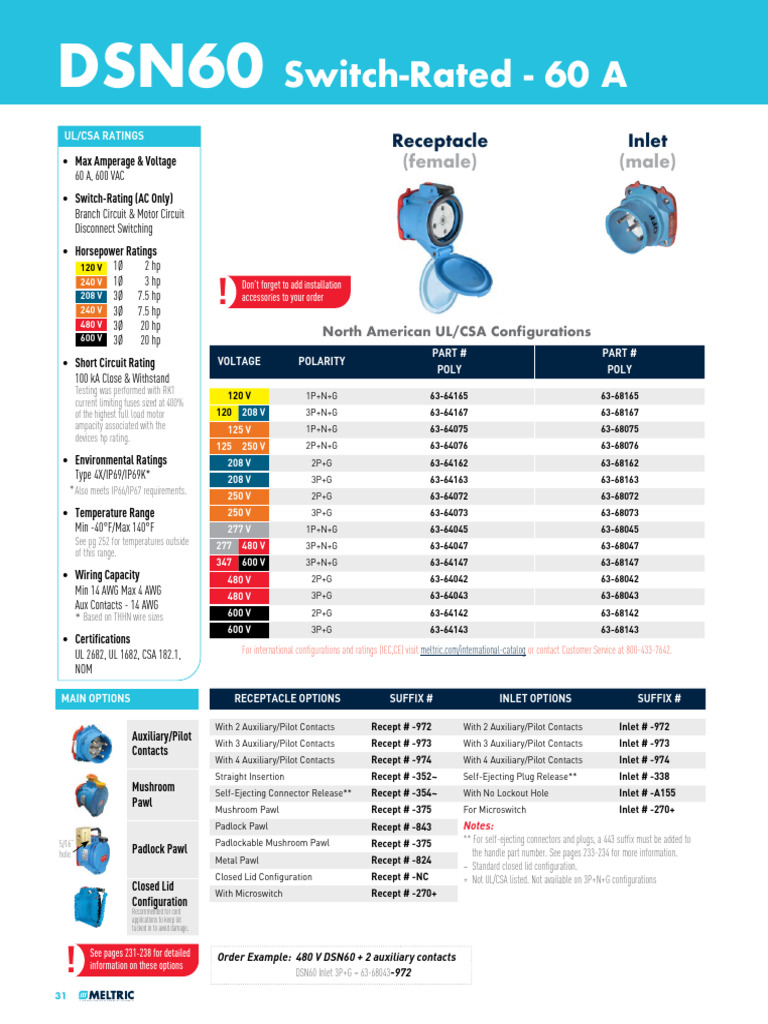 Meltric Catalog ds60 en PDF Electrical Connector Ac Power Plugs