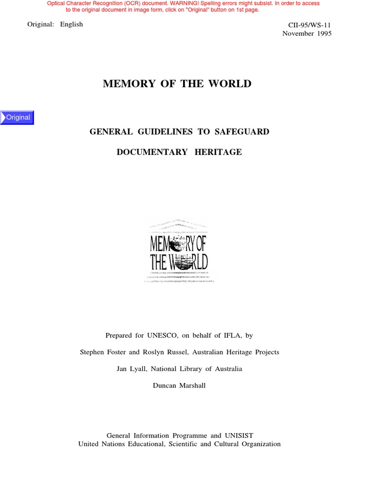 UNESCO MOW 1995 Memory of The World PDF Libraries World Heritage Site