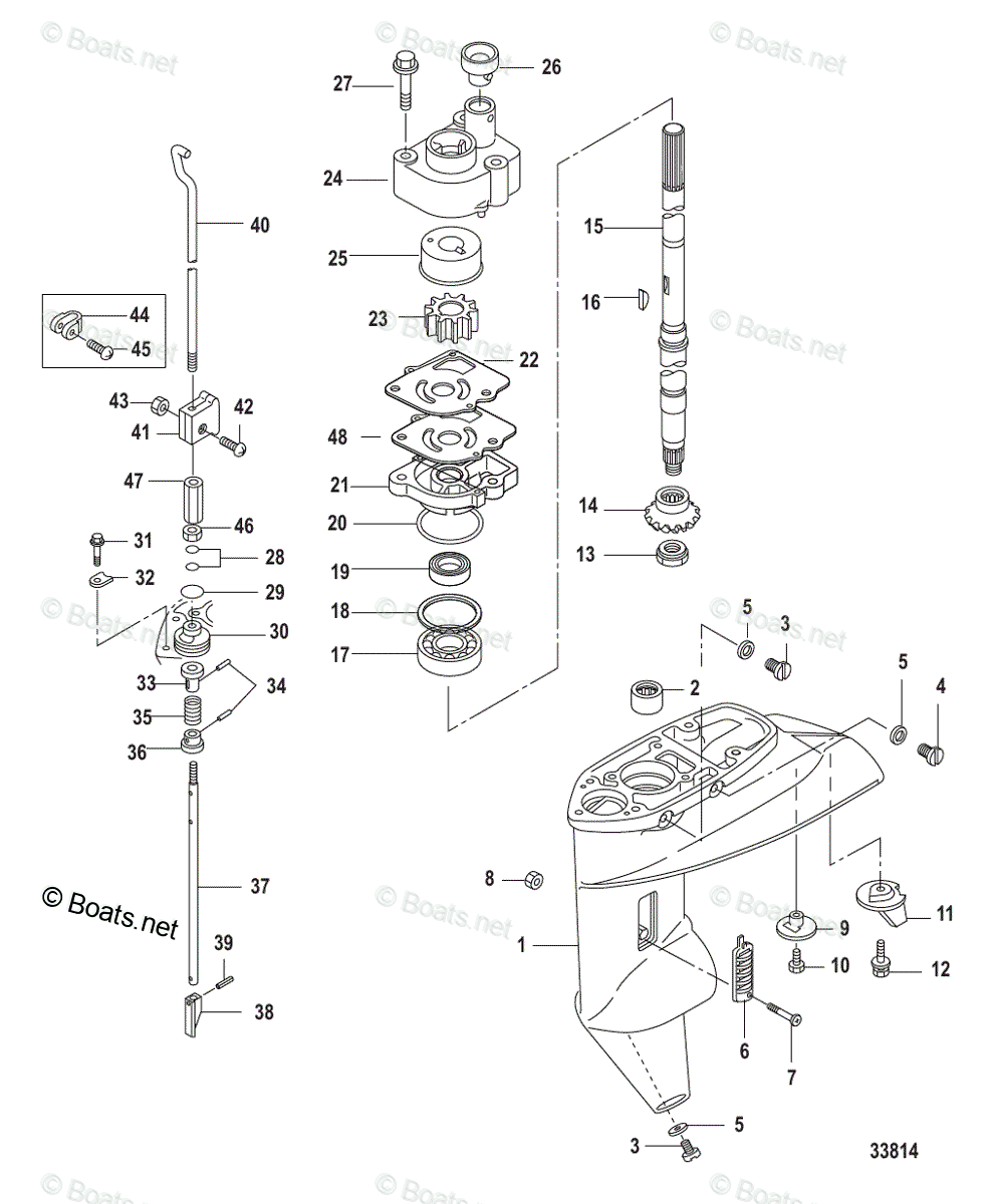Mercury Outboard 3.3HP OEM Parts Diagram for Driveshaft Housing and
