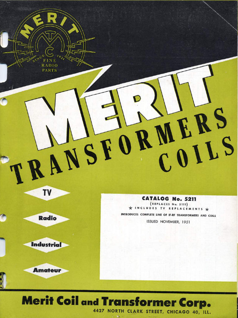 Merit Catalog 1952 Transformers and Coils PDF
