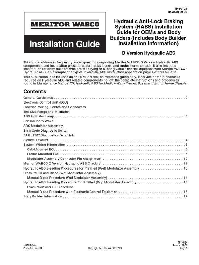 Meritor WABCO Hydraulic Antilock Braking System (ABS) Troubleshooting