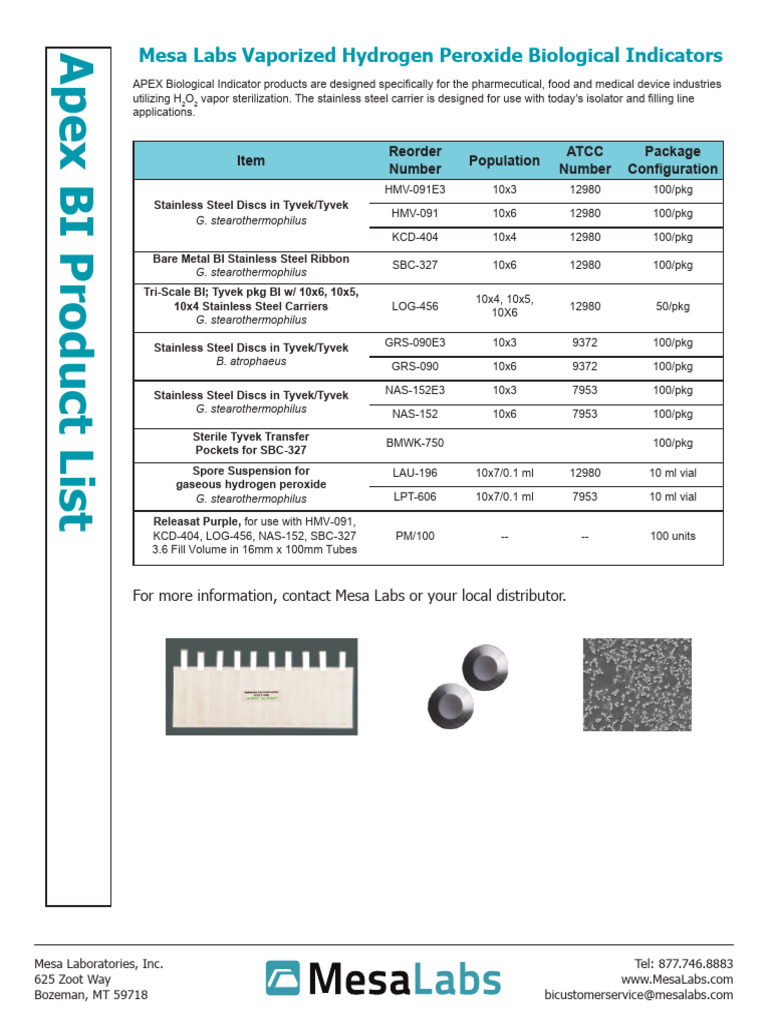 Spore Strips Mesa Labs Offers a Complete Line of Spore Strips for