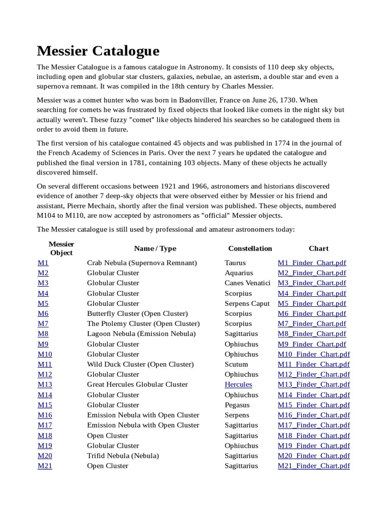Messier Catalog PDF PDF