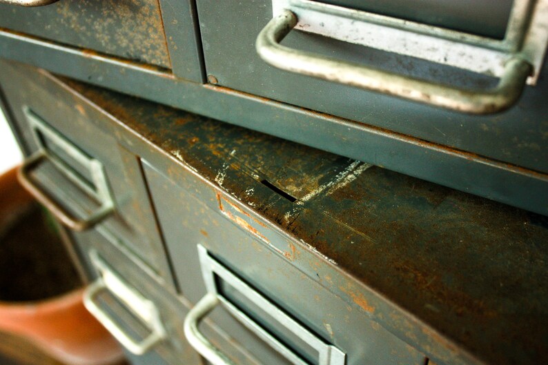 Vintage Industrial Metal Drawer Card Catalog File Apothecary Multi