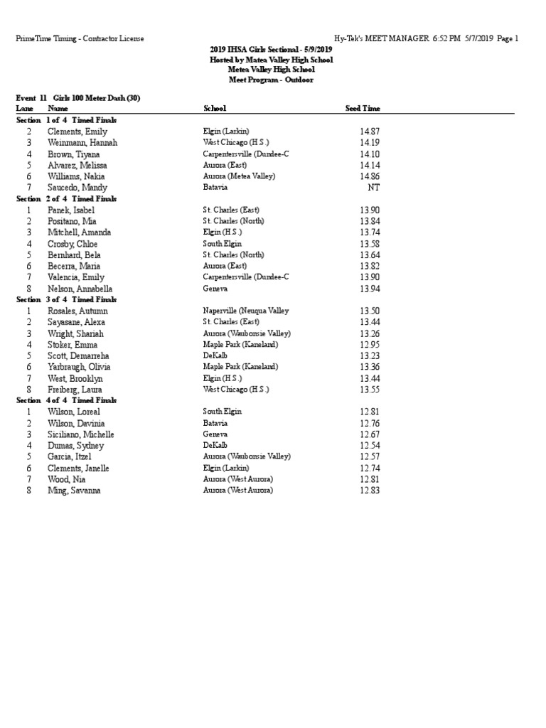 Metea Valley Girls Sectional Program Download Free PDF Sports