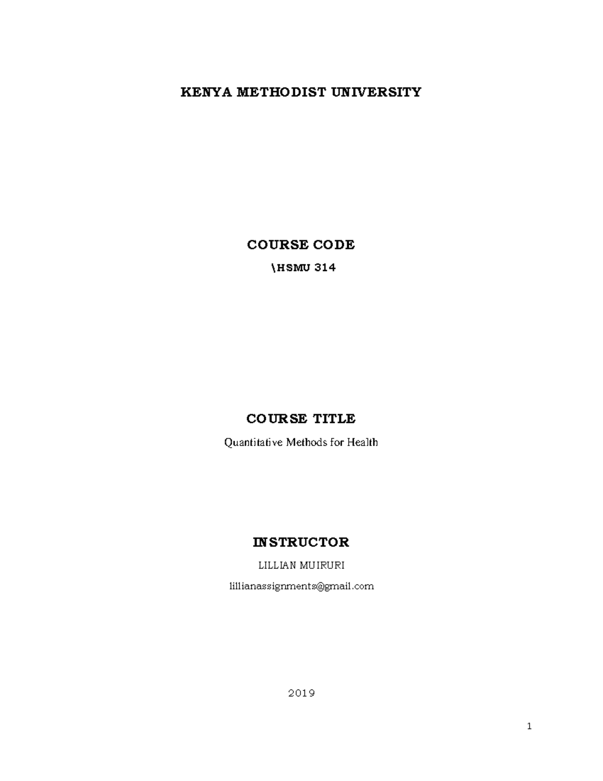HSMU 314 Module FIVE Onwards KENYA METHODIST UNIVERSITY COURSE CODE