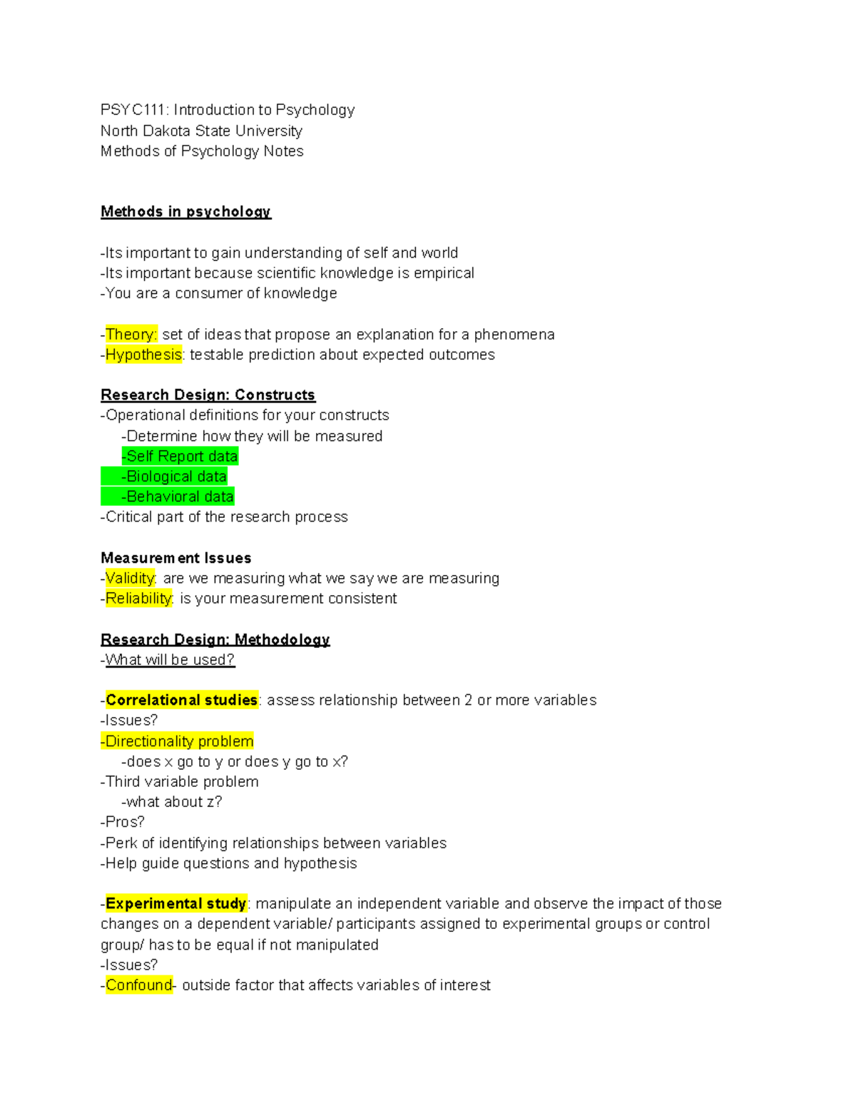 Methods of Psychology2 PSYC111 Introduction to Psychology North