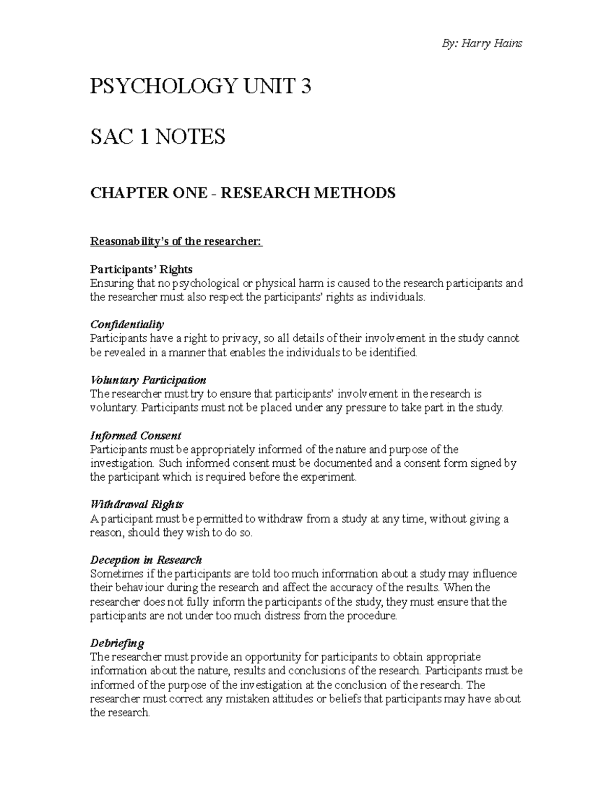 7836 Psych 3 SAC 1 Notes PSYCHOLOGY UNIT 3 SAC 1 NOTES CHAPTER ONE