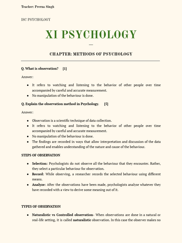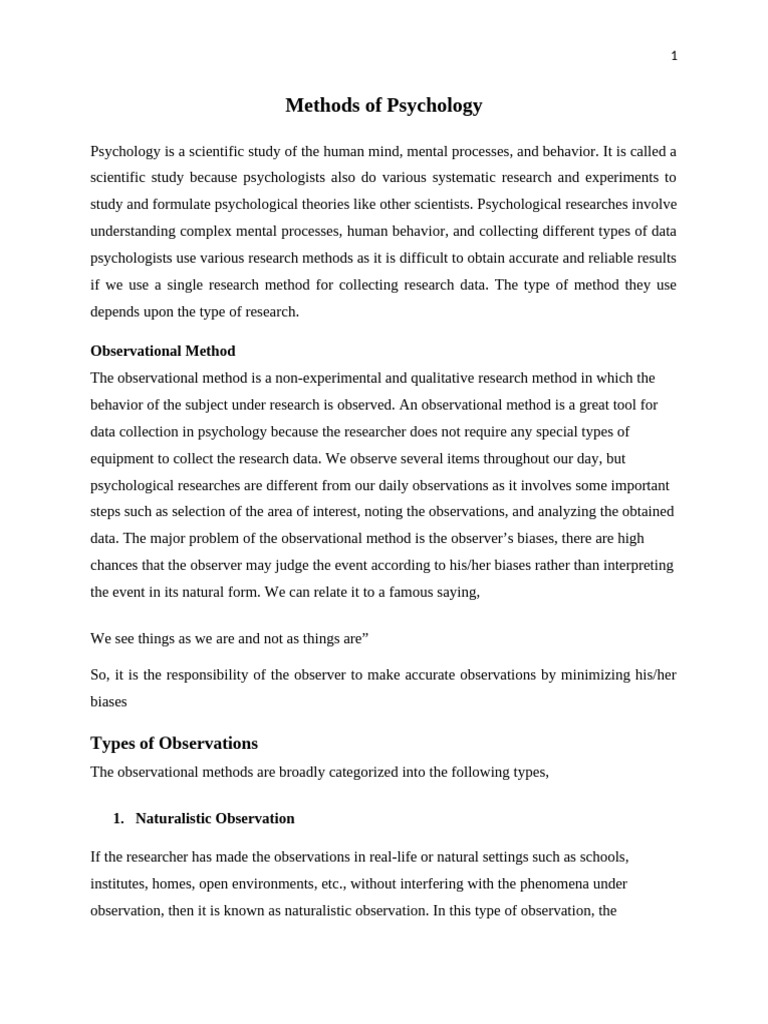 Methods of Psychology PDF Psychology Observation