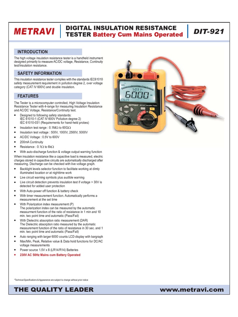 MetraviDIT921DigitalInsulationTesterCatalogue PDF