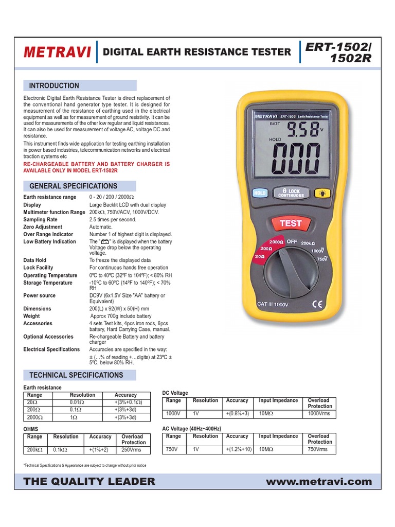 Metravi Digital Earth Resistance Tester PDF Electrical Resistance