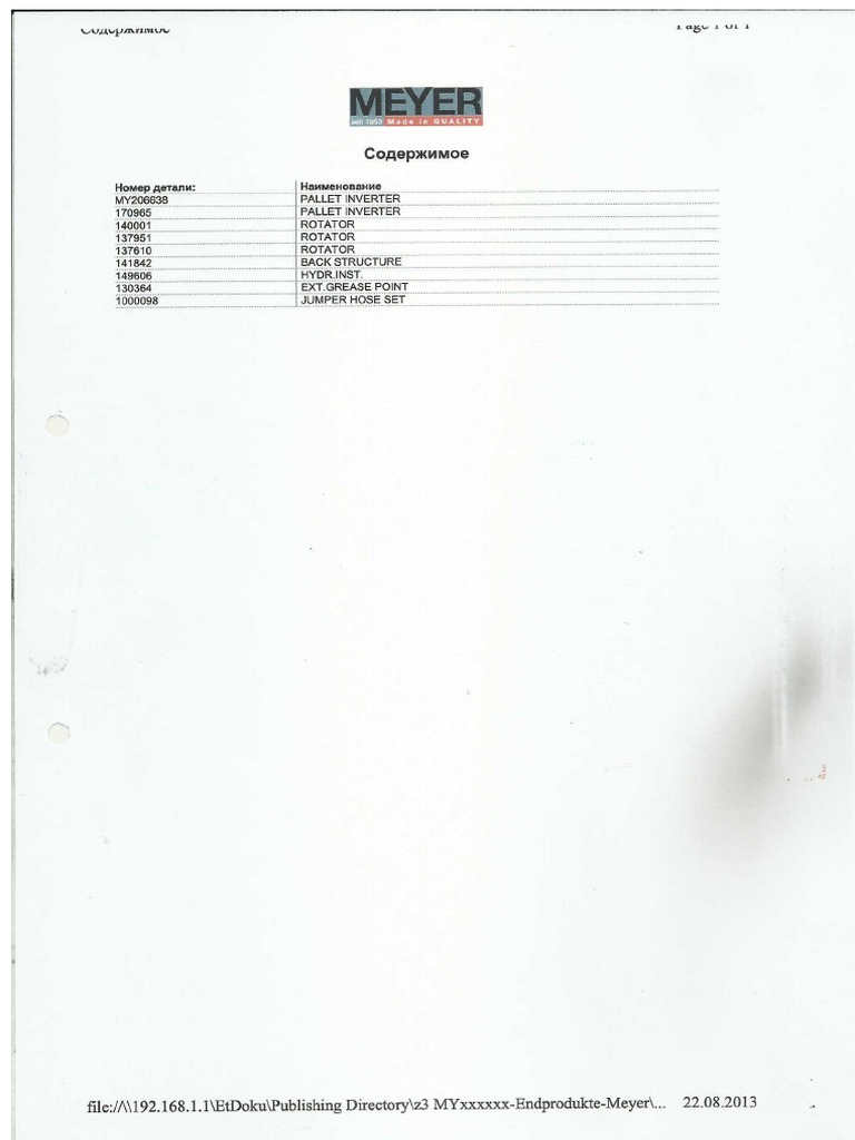 Meyer Attatchment Parts Catalogue Meyer65206f 190950 PDF