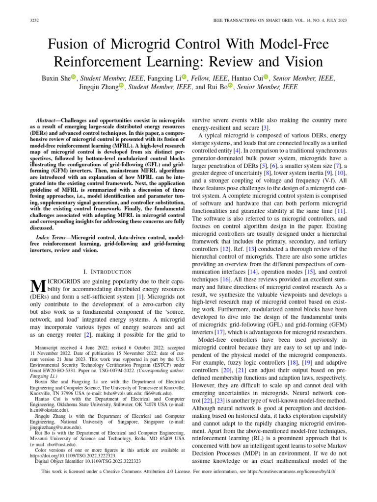 Fusion of Microgrid Control With ModelFree Reinforcement Learning