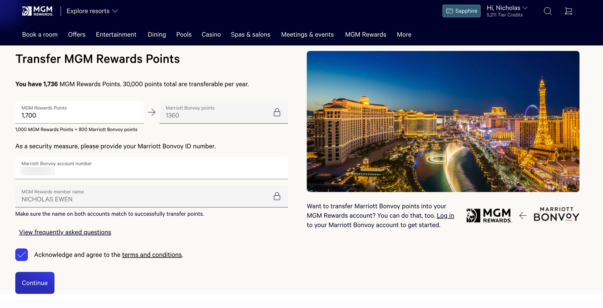 You can now transfer 10 MGM Rewards points for 8 Marriott Bonvoy points