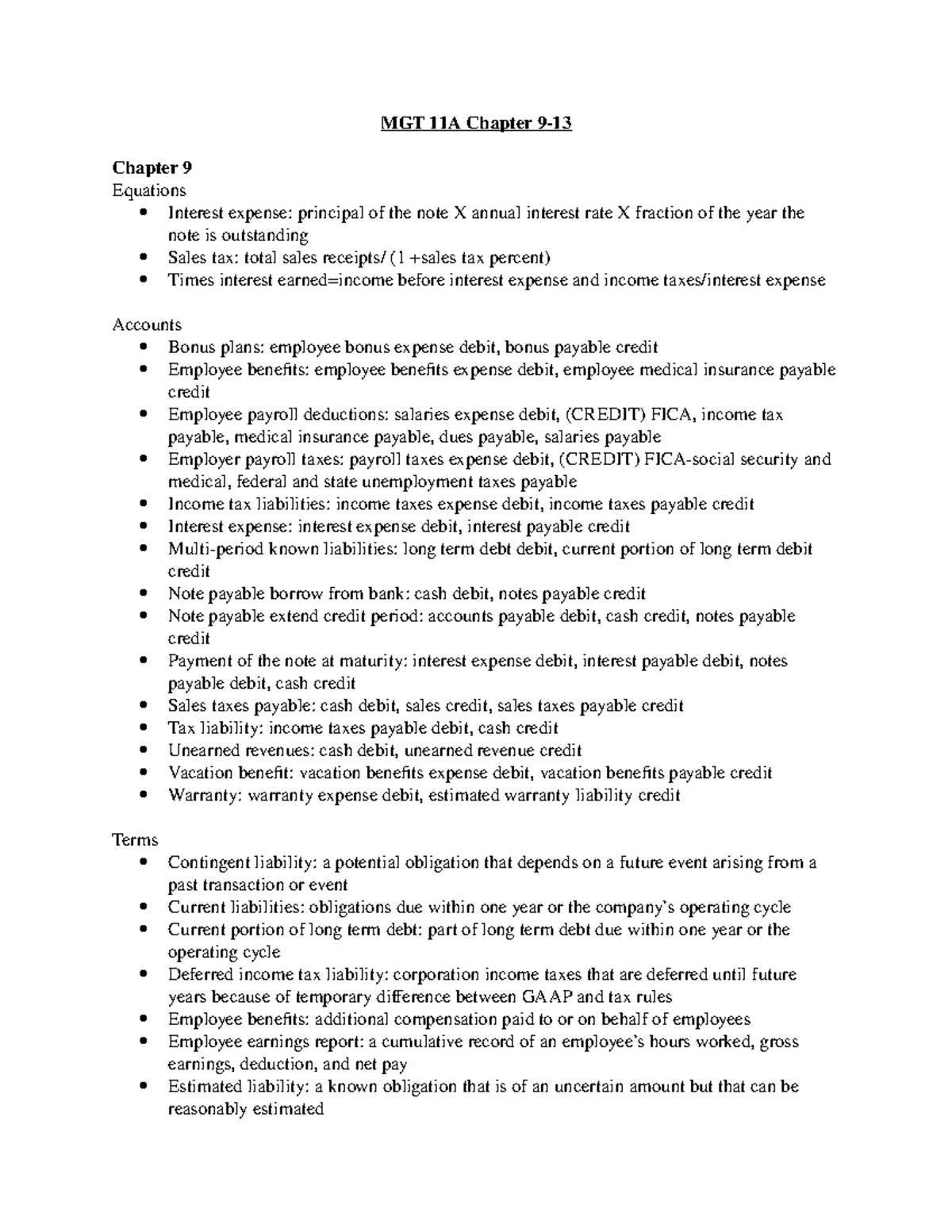 MGT 11A Chapter 9 Equations and Terms Studocu