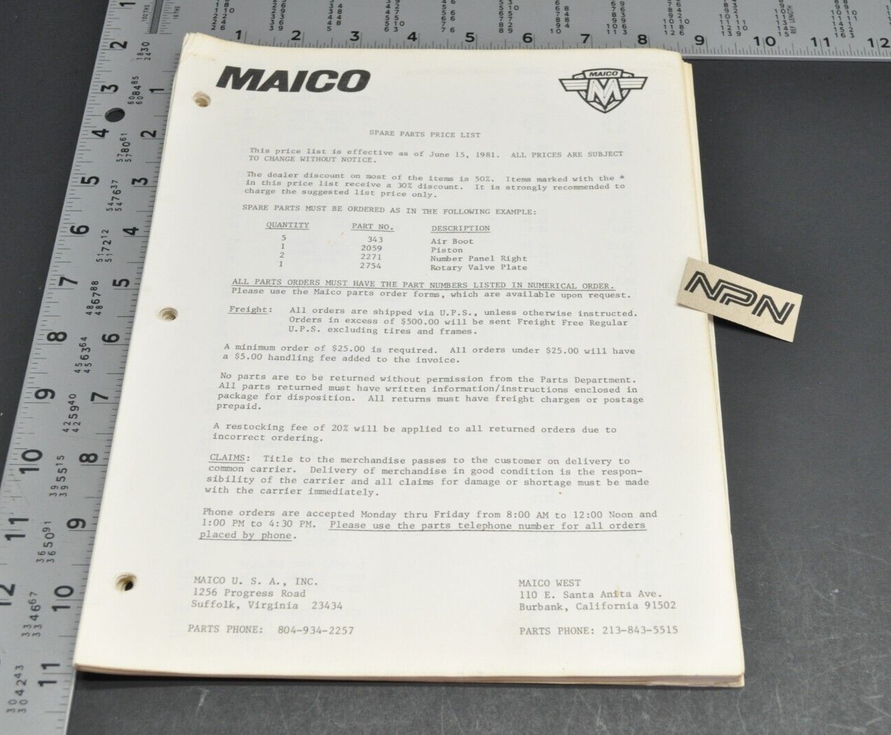 Vintage 1981 Maico Motorcycle Spare Parts Price List Manual Book eBay