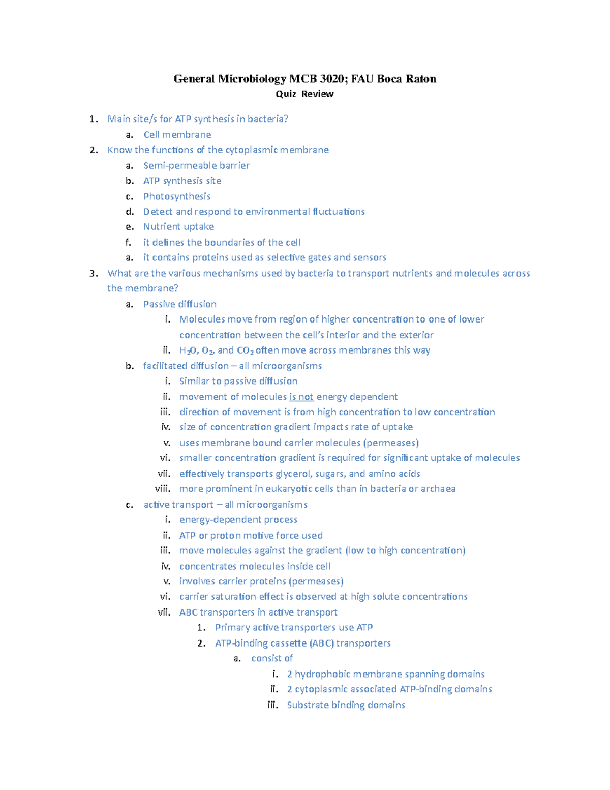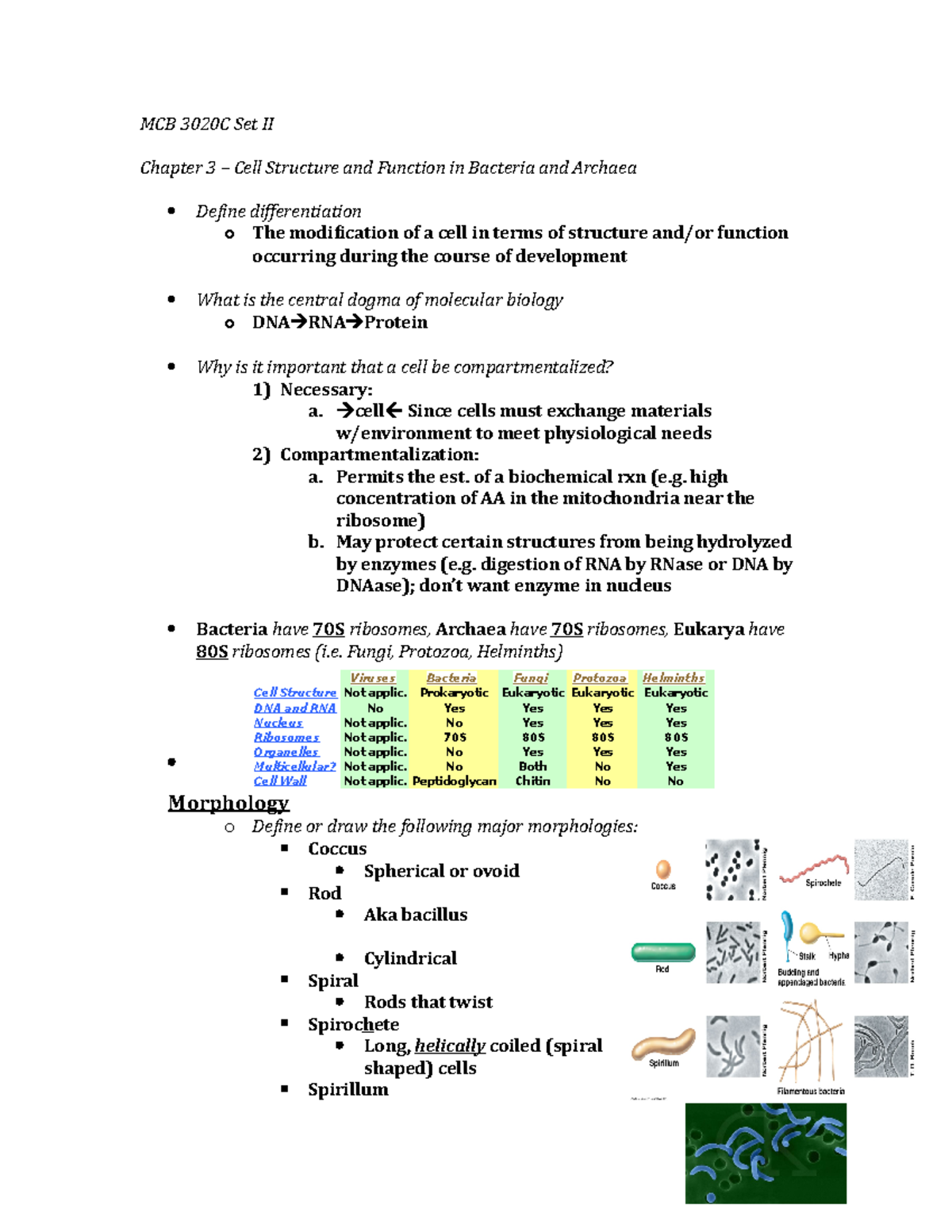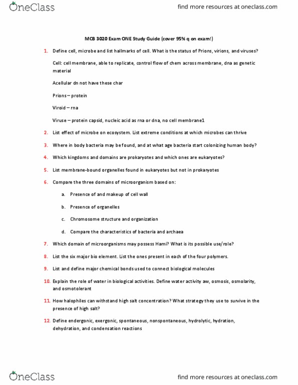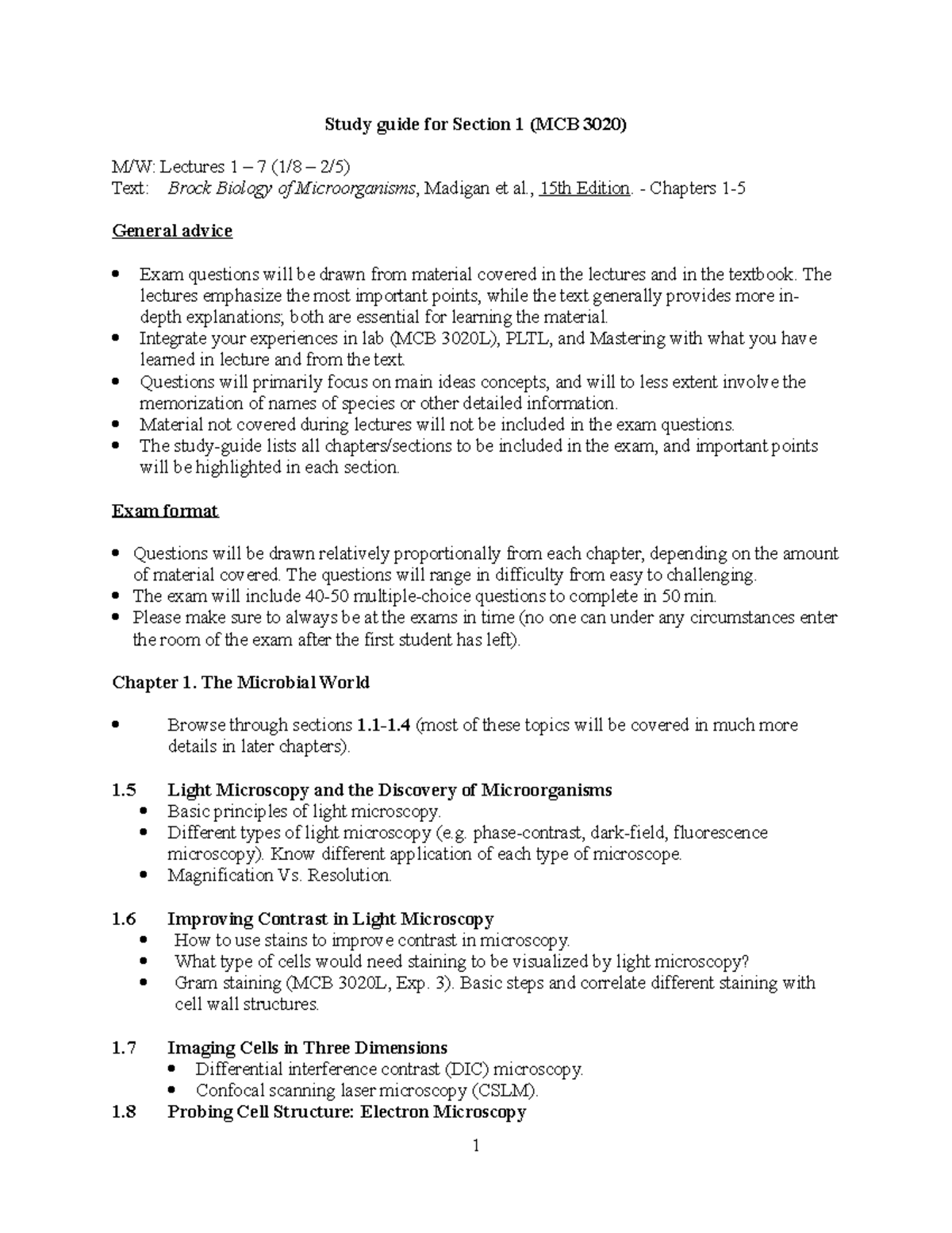 Study Guide Exam 1 (MCB 3020) Study guide for Section 1 (MCB 3020) M