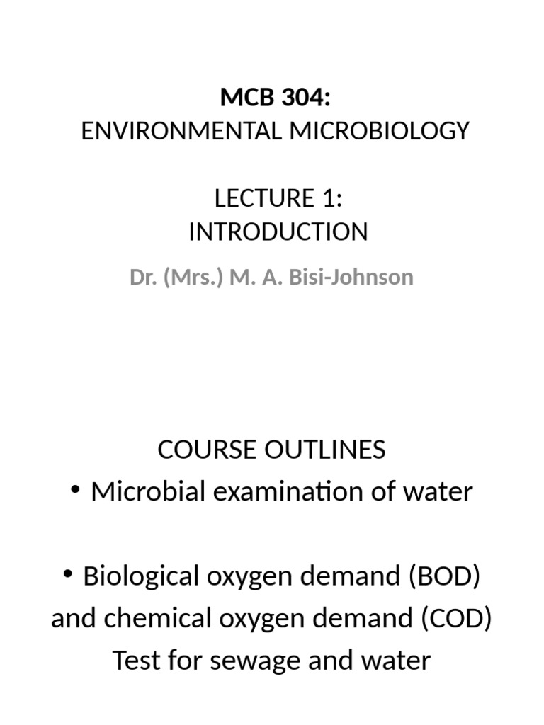 MCB Environmental Microbiology Lecture PDF Water Quality Drinking