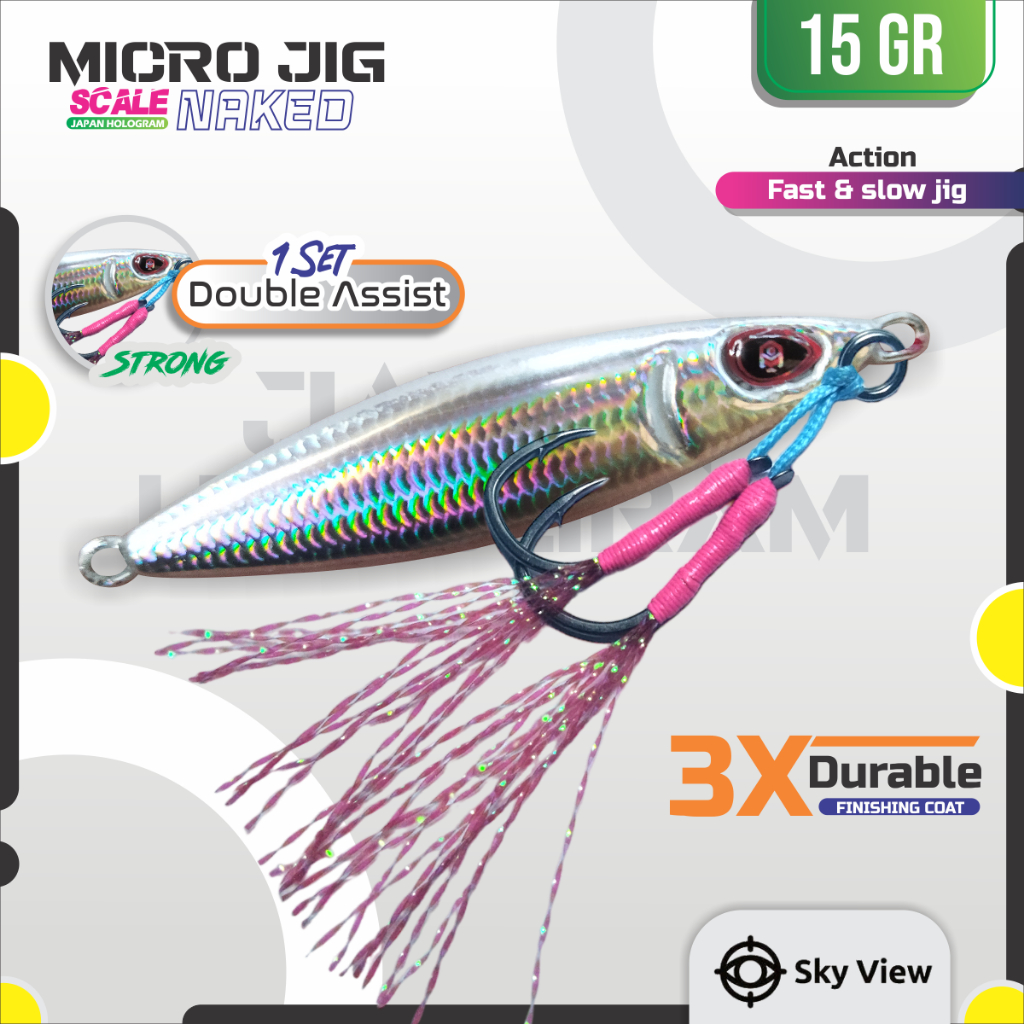 Jual Micro Jig 15 Double Assist SKYVIU KOKA Naked Hologram Sisik Silver