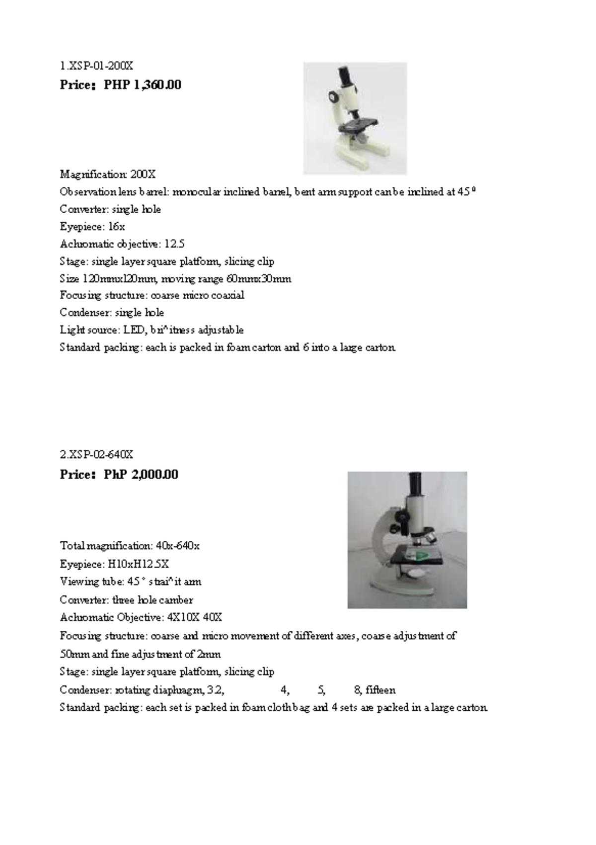 Microscope Catalog and Price List (XSP Series & BM63 Models) Studocu