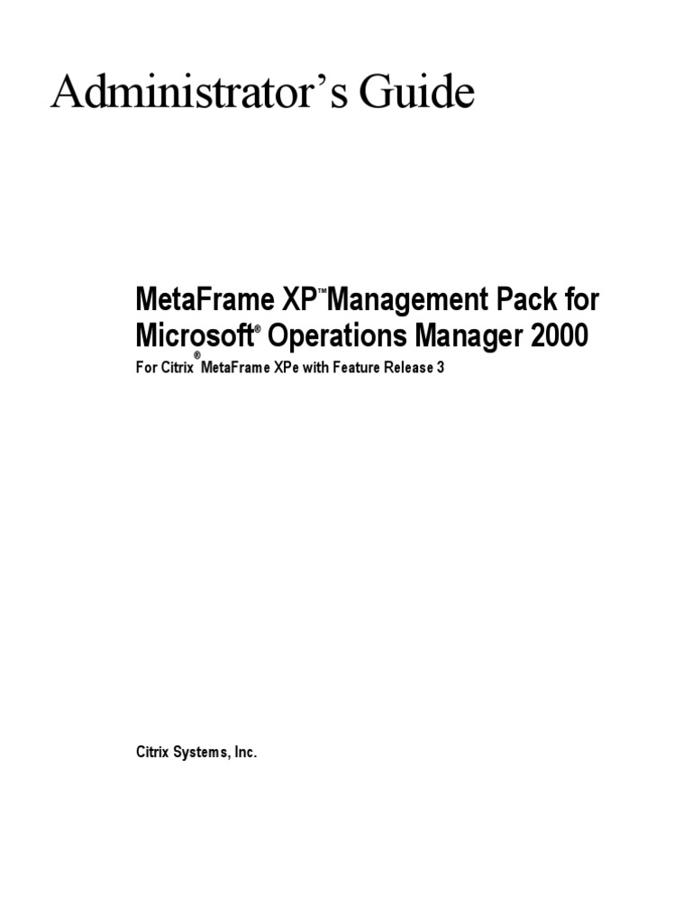 Administrator'S Guide Metaframe XP Management Pack For Microsoft