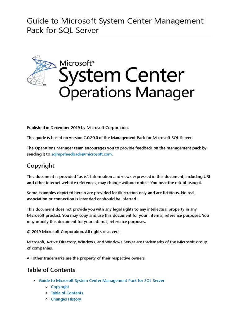 Guide To Microsoft System Center Management Pack For SQL Server PDF