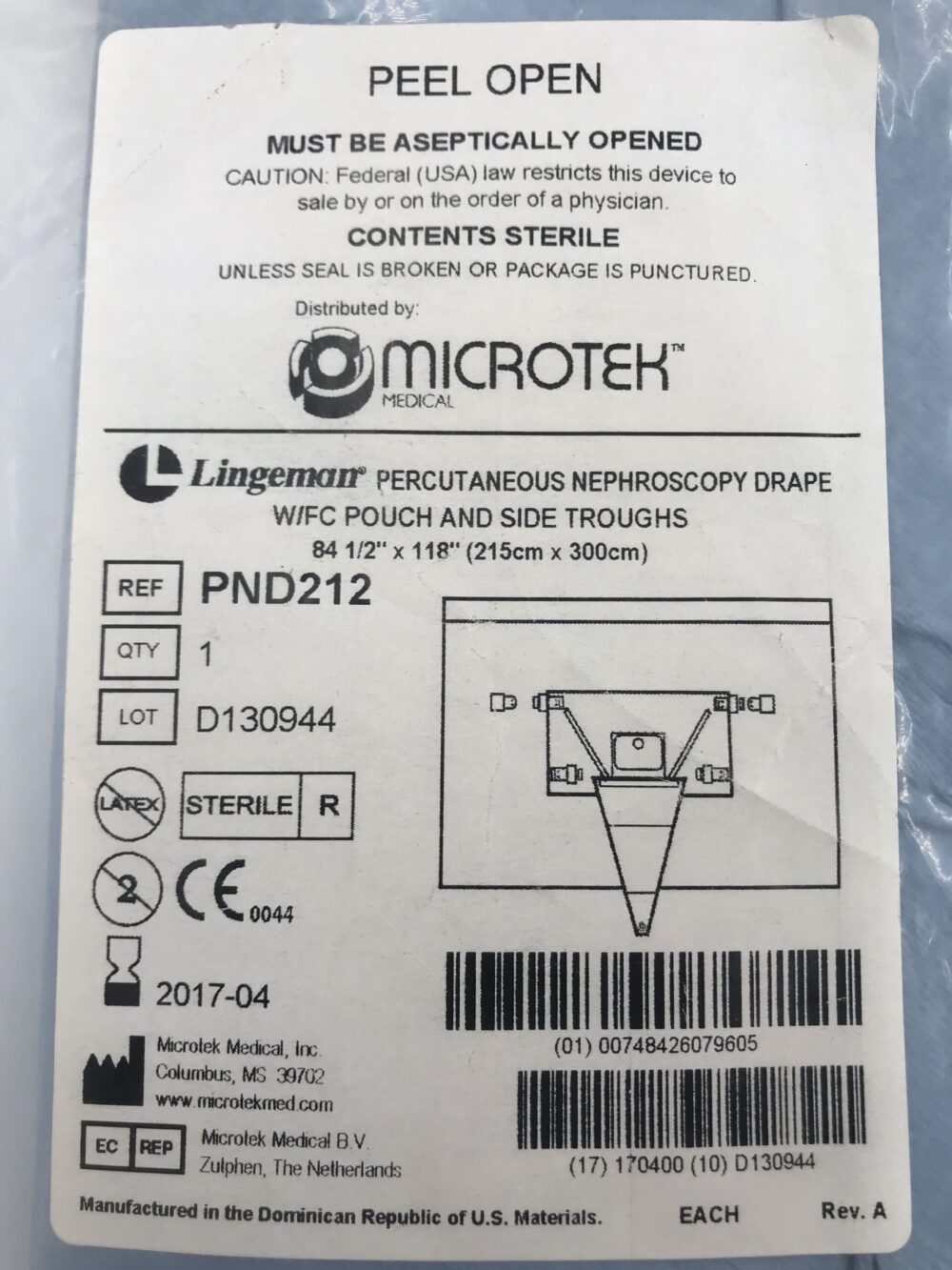 Microtek PND212 Percutaneous Nephroscopy Drape w/fc Pouch and Side