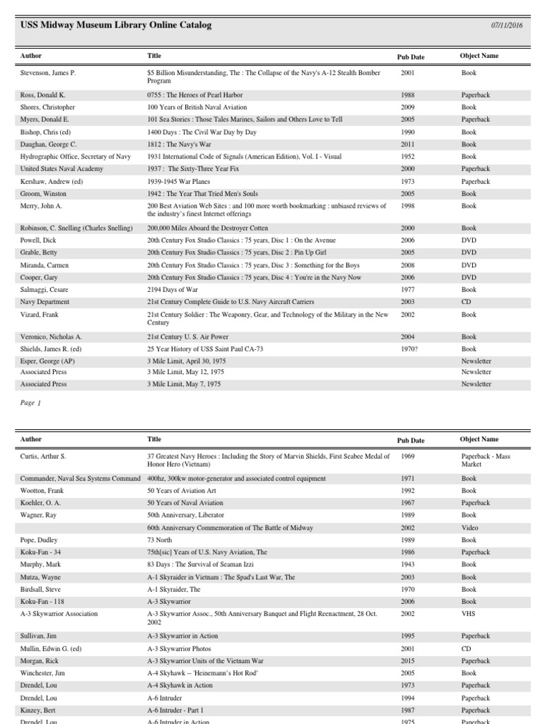 USS Midway Museum Library Online Catalog PDF PDF United States Navy