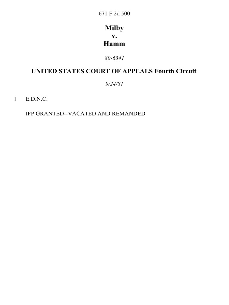 Milby v. Hamm, 671 F.2d 500, 4th Cir. (1981) PDF