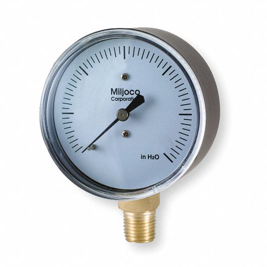 MILJOCO Pressure Gauge, 0 to 10H2O, 21/2In, 1/4In 2RHE2LP2507L200