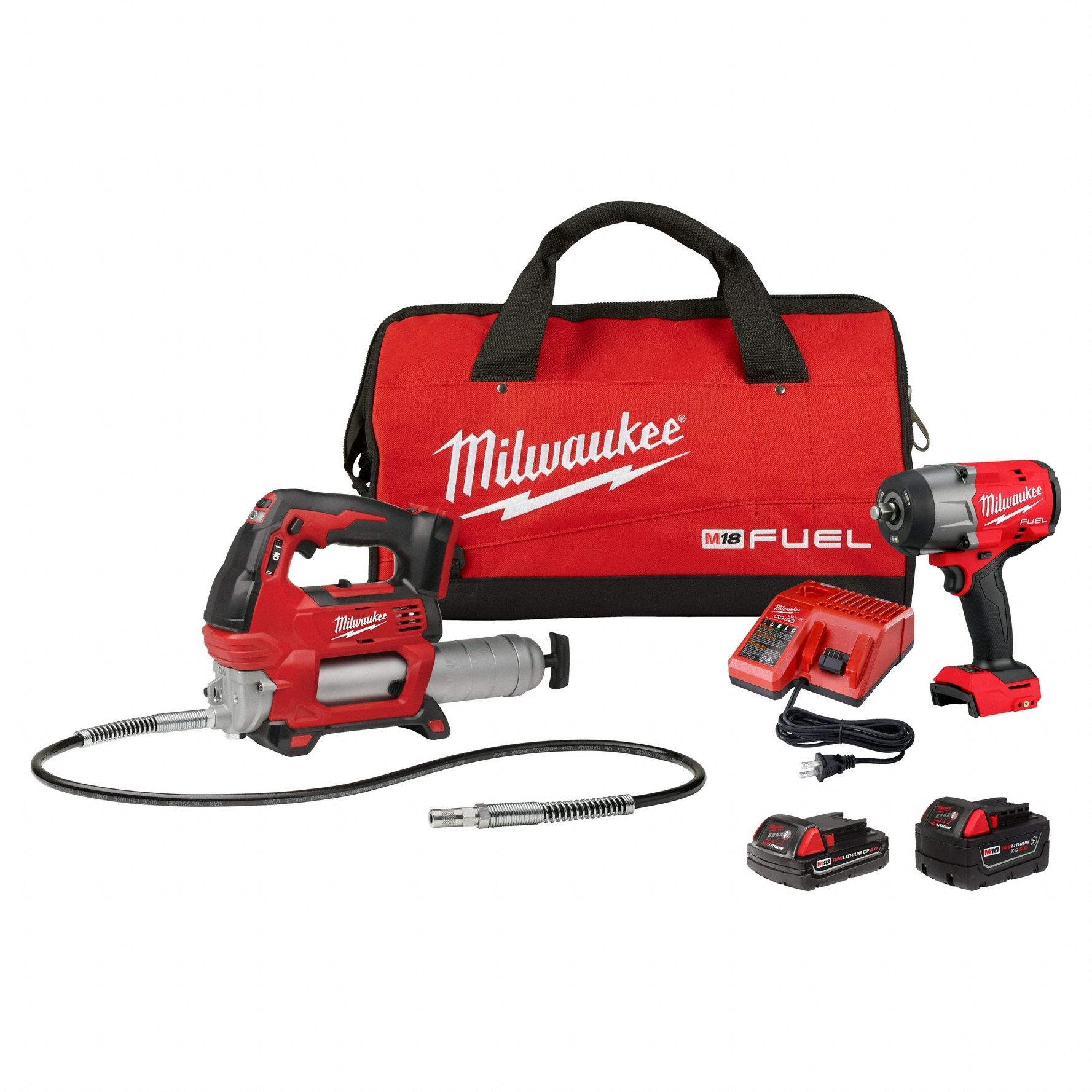 MILWAUKEE, 2 Tools, Grease Gun/Impact Wrench, Cordless Tool Combination