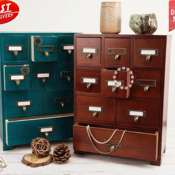 16 Drawers Apothecary with Drawers, Library Card Catalog