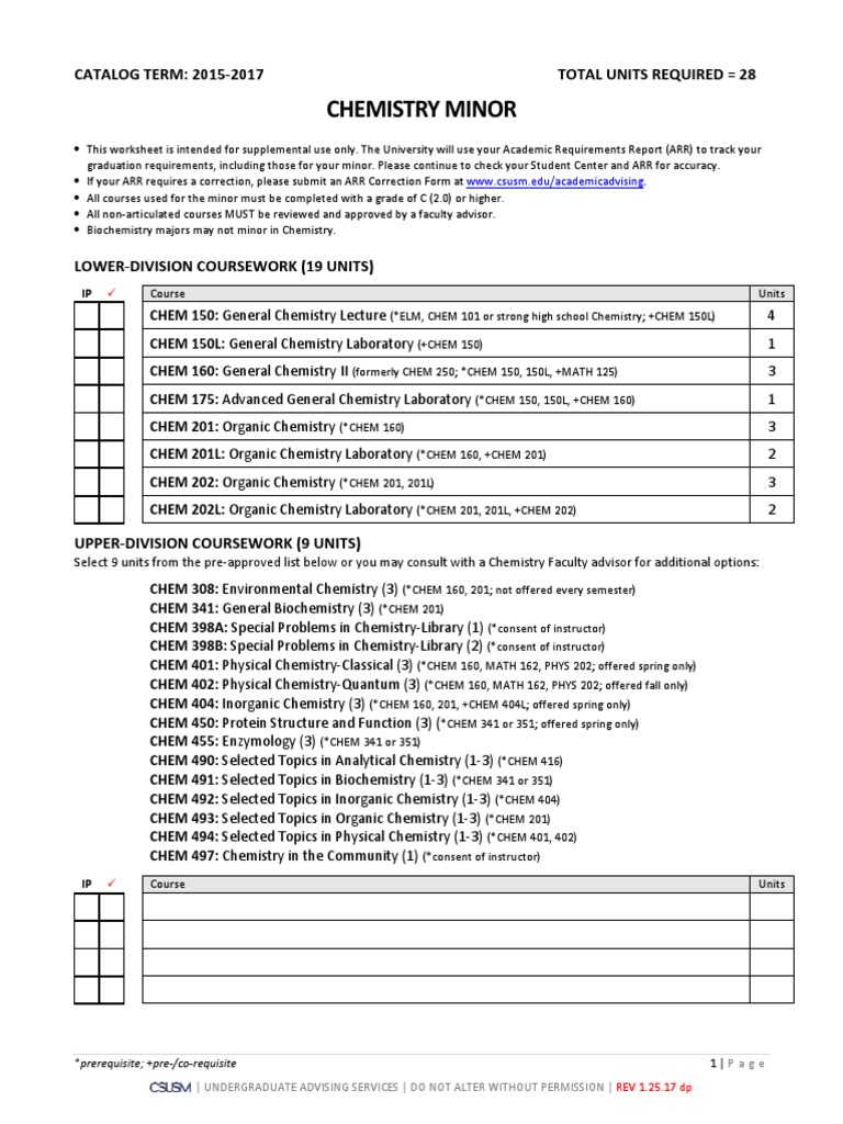 Chemistry Minor CATALOG TERM 2015 2017 Total Units Required 28 PDF