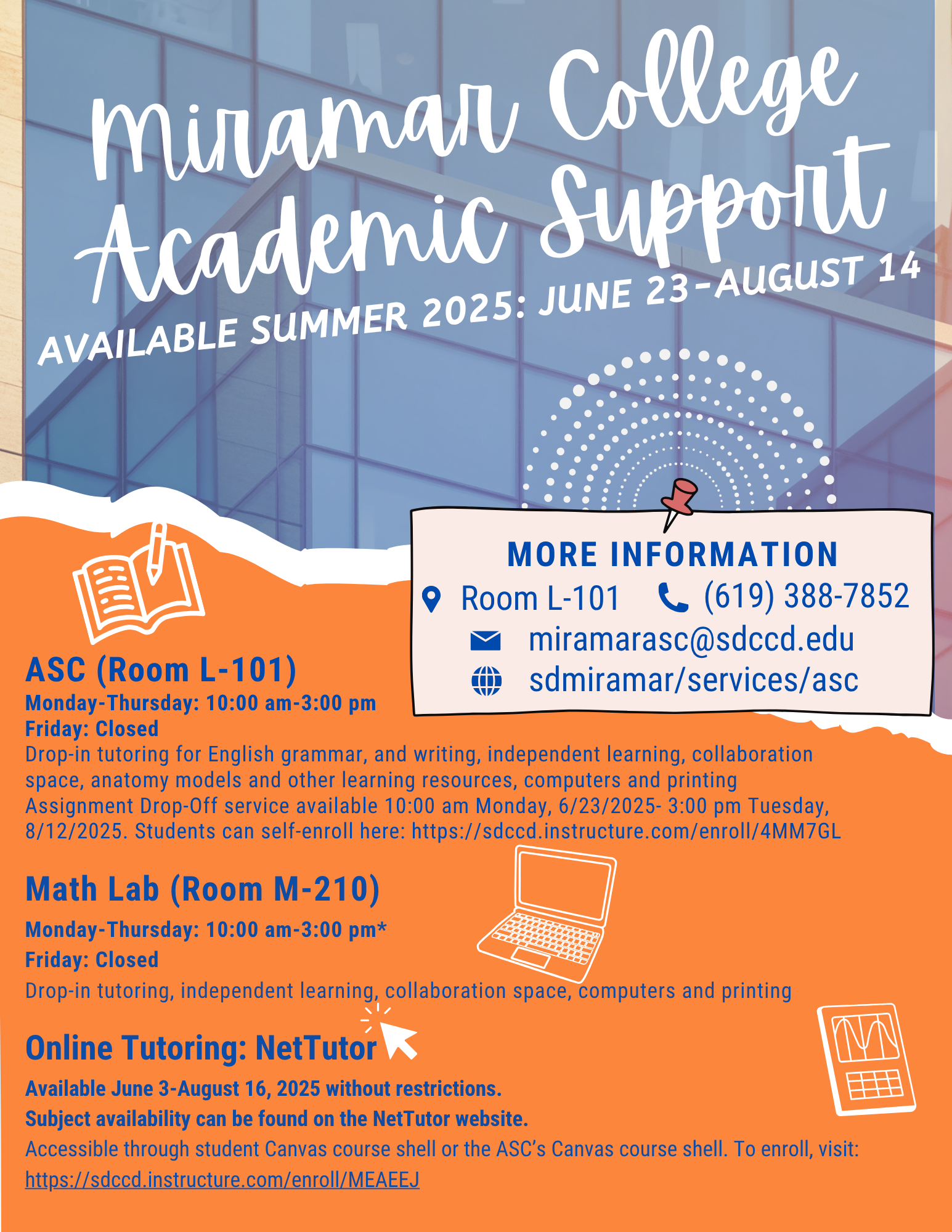 Spring 2024 Miramar Academic Support Services Flyer San Diego Miramar