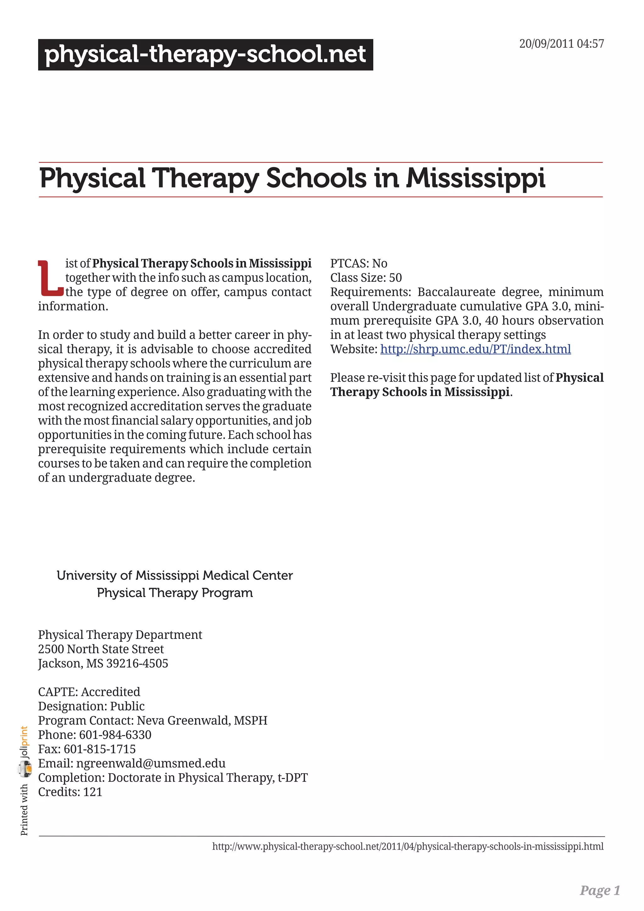 Physical therapy schools in mississippi PDF