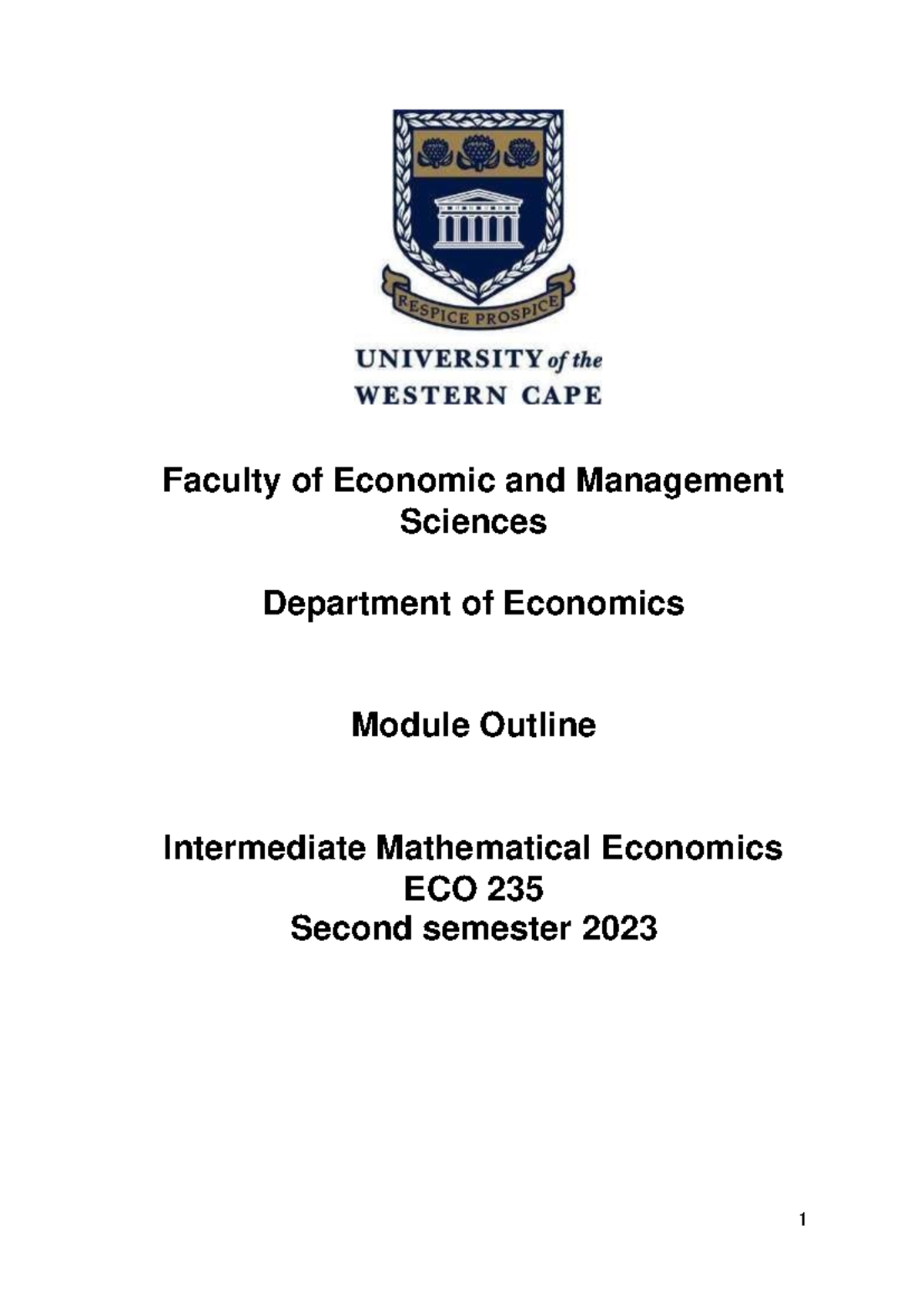 2023 ECO235 Course Outline1 Faculty of Economic and Management