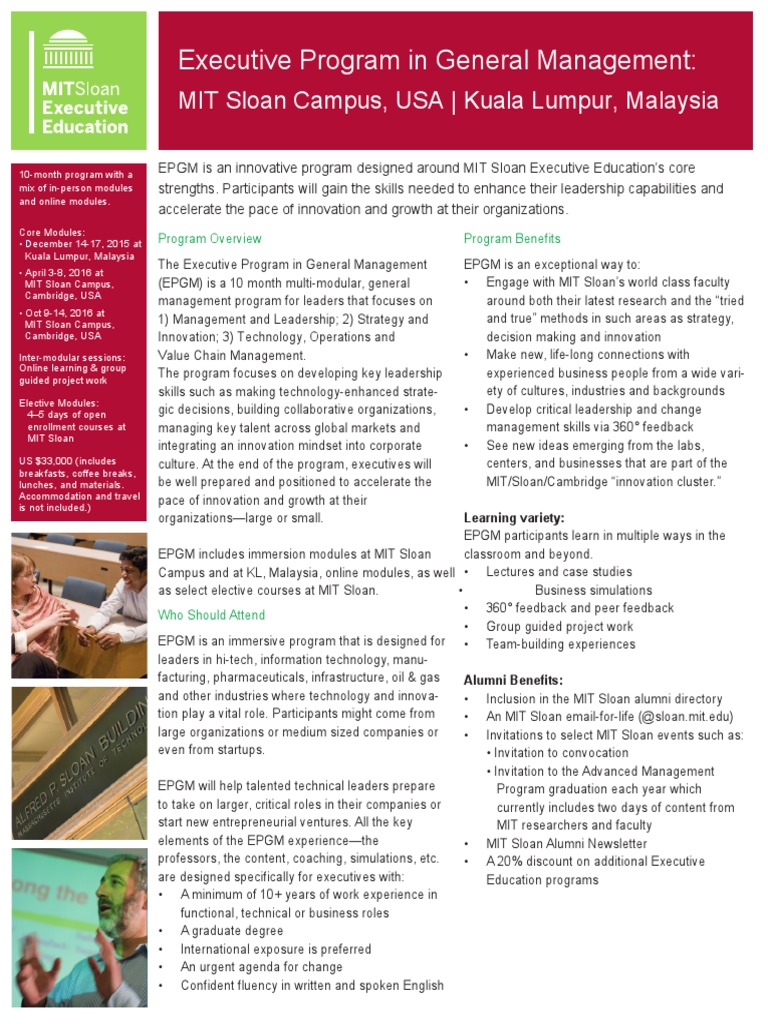 Executive Program in General Management MIT Sloan Campus, USA Kuala