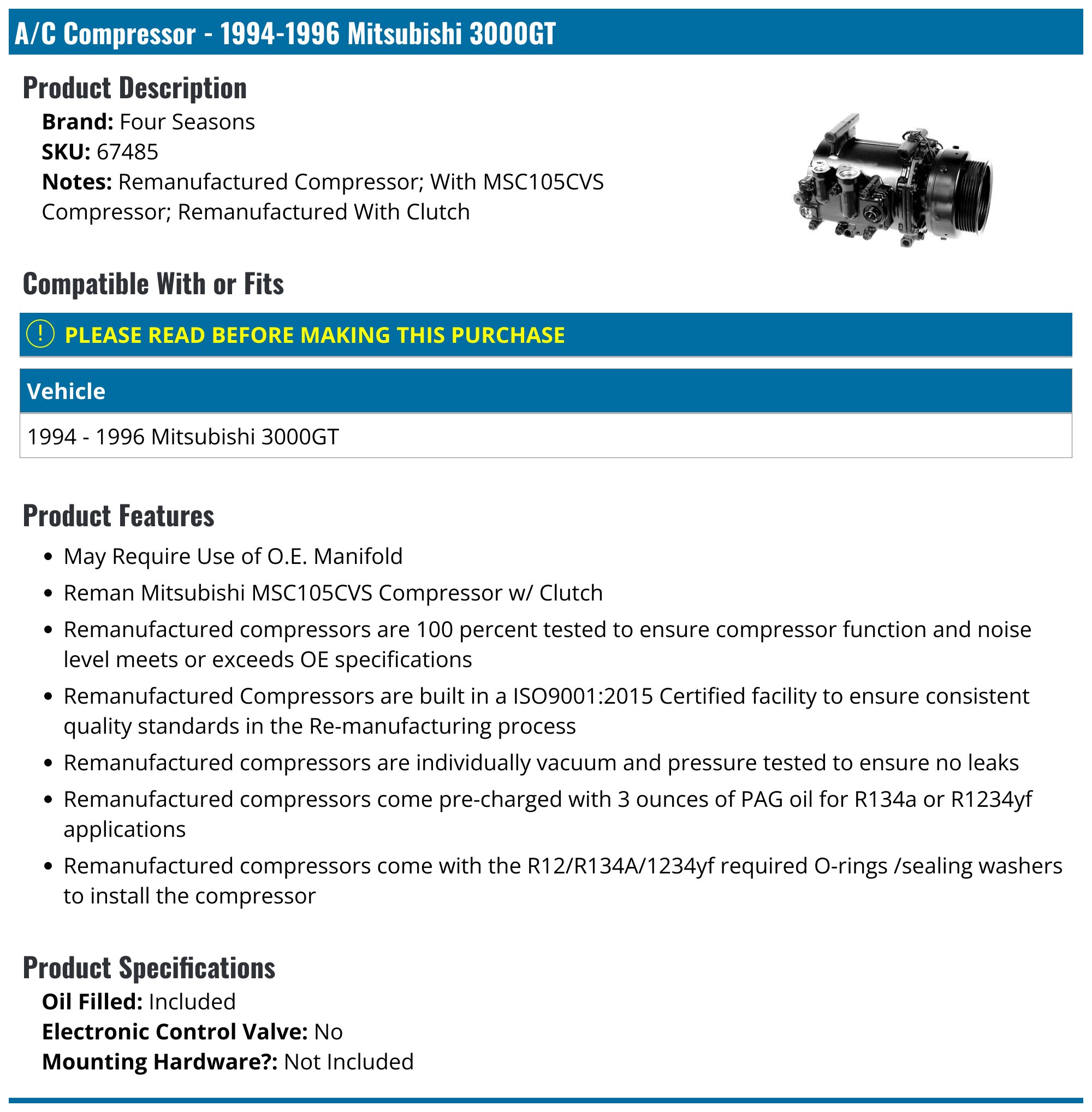 19941996 Mitsubishi 3000GT A/C Compressor Four Seasons 67485